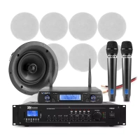 Profesjonalny system głośników sufitowych 8 x 6.5" FCS6 z wzmacniaczem oraz zestawem mikrofonów bezprzewodowych