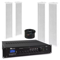 4 strefowy zestaw białych głośników instalacyjnych 4 x 8" CSPB8 100V z wzmacniaczem i kontrolerami głośności