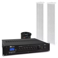 2 strefowy zestaw białych głośników naściennych 4 x 6.5" BC65V z wzmacniaczem oraz tłumikami głośności