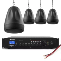 2 strefowy zestaw czarnych głośników naściennych 4 x 6.5" BC65V z wzmacniaczem oraz tłumikami głośności